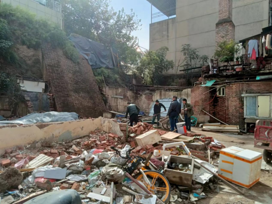 這棟始建于70年代磚木結(jié)構(gòu)的危房,由于年代久遠(yuǎn),已出現(xiàn)局部開裂和傾斜現(xiàn)象,存在嚴(yán)重安全隱患。為保障該房屋所住居民及附近群眾的生命財(cái)產(chǎn)安全,消除安全隱患,防止房屋垮塌事故發(fā)生,綜合經(jīng)營(yíng)部與西一路街道辦事處就此問題進(jìn)行多次的協(xié)調(diào)溝通,就消除安全隱患的解決辦法雙方達(dá)成一致,決定對(duì)該危房進(jìn)行拆除“解?!?,同時(shí)提前上門入戶動(dòng)員,確保危房?jī)?nèi)住戶全部遷出。目前,危舊平房已順利完成拆除,已進(jìn)入垃圾清運(yùn)階段。