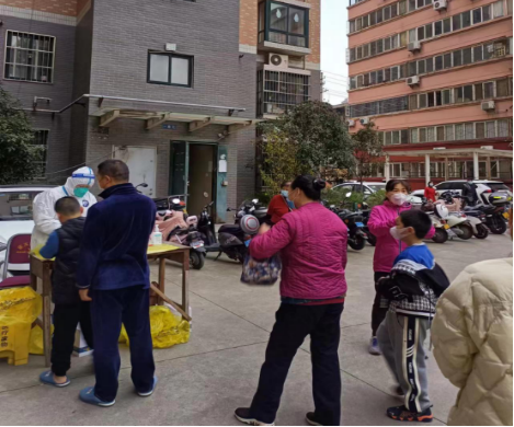 “各位住戶,核酸檢測已開始,請(qǐng)下樓做核酸了”。這是10月份以來,中心代管的機(jī)械廠小區(qū)收費(fèi)崗?fù)踺x同志每天清晨6點(diǎn)拿著小喇叭通知小區(qū)住戶下樓做核酸的聲音。